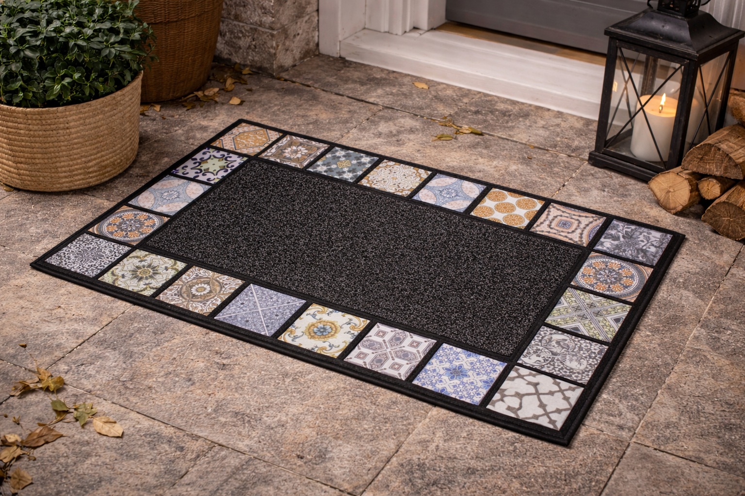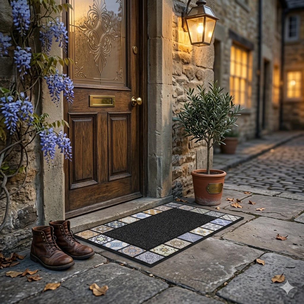 Apportez du caractère à votre entrée avec ce tapis décoratif au motif de carreaux inspirés des faïences traditionnelles. Sa bordure composée de différents motifs géométriques et floraux rappelle l’esprit des carreaux de ciment et apporte une touche authentique et élégante à votre intérieur.