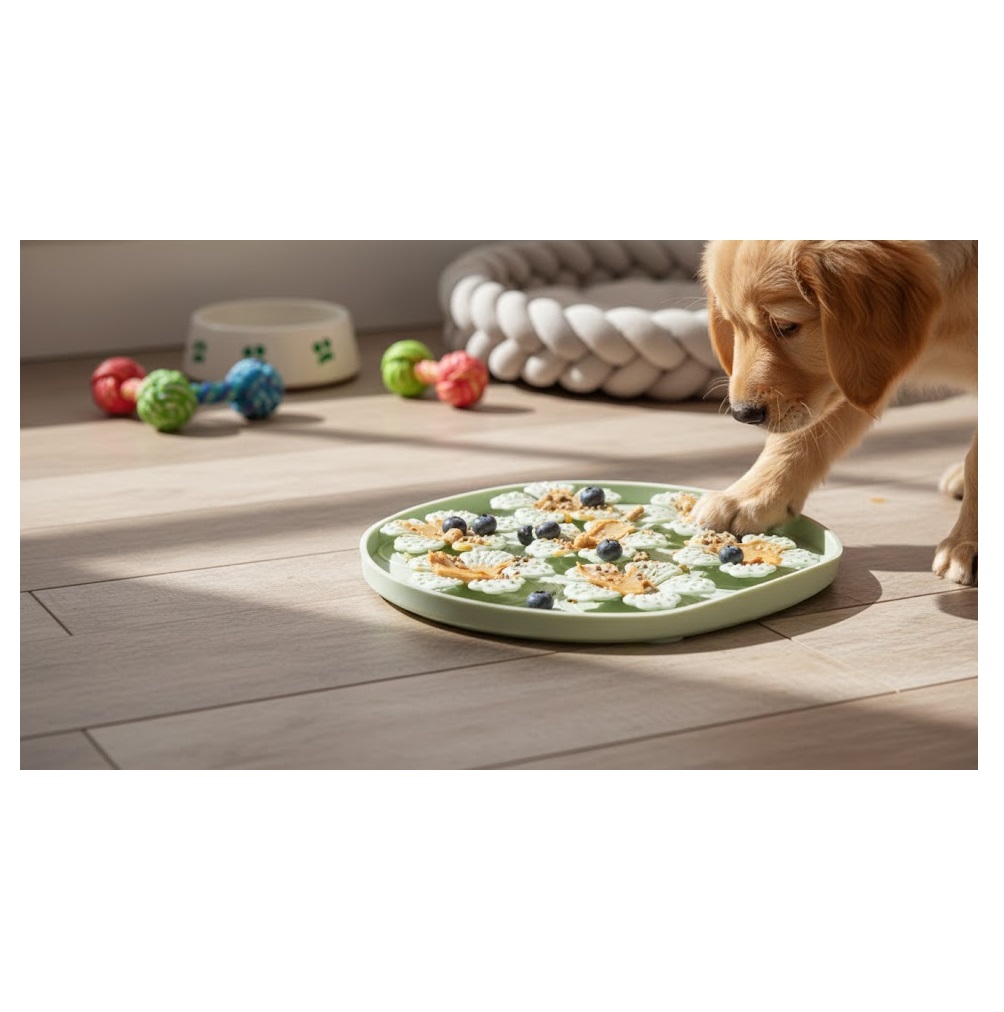 Son motif floral encourage le léchage lent, aidant à éviter l’engloutissement des repas, à réduire le stress, et à limiter les risques d’obésité et de problèmes digestifs.