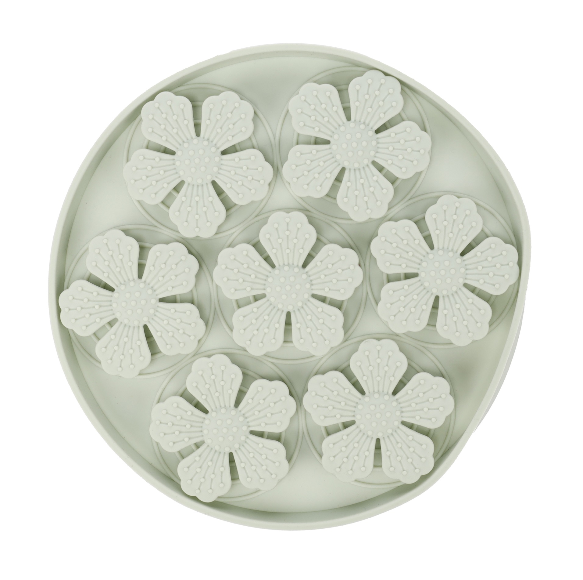 Offrez à votre chien ou votre chat un moment gourmand et apaisant avec le tapis à lécher Fleur rond taupe.