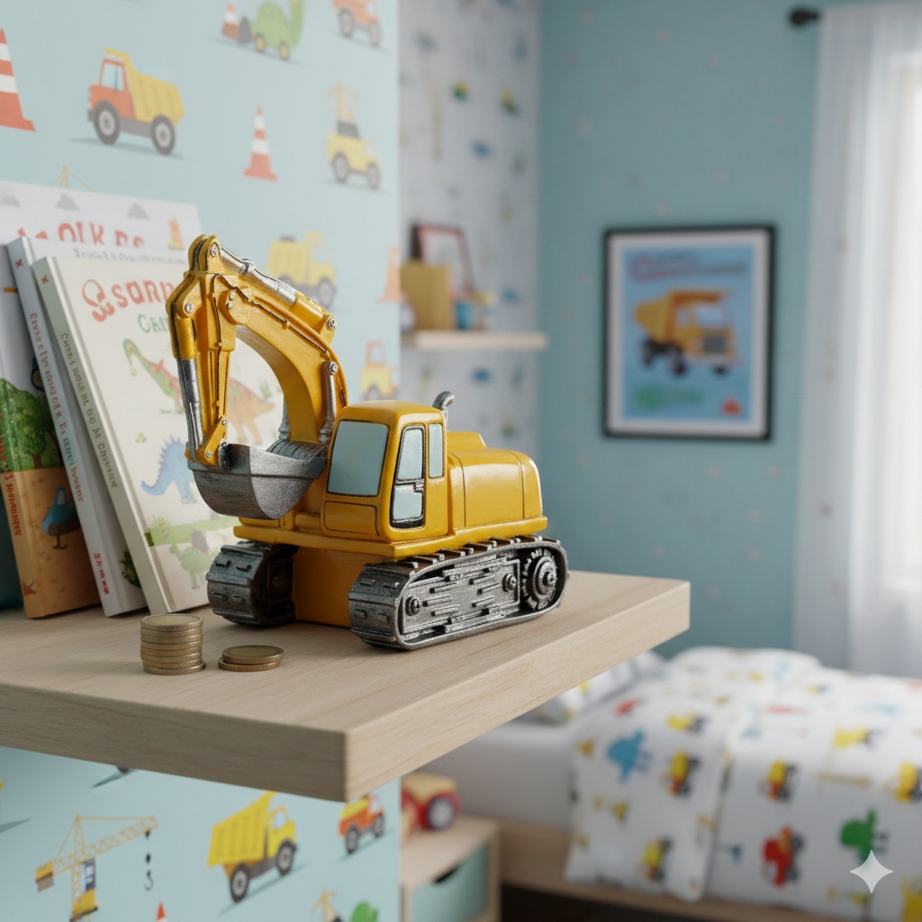 Cette tirelire pelleteuse est parfaite pour associer jeu, décoration et apprentissage de l’épargne, tout en stimulant l’imaginaire des enfants autour de l’univers des chantiers.