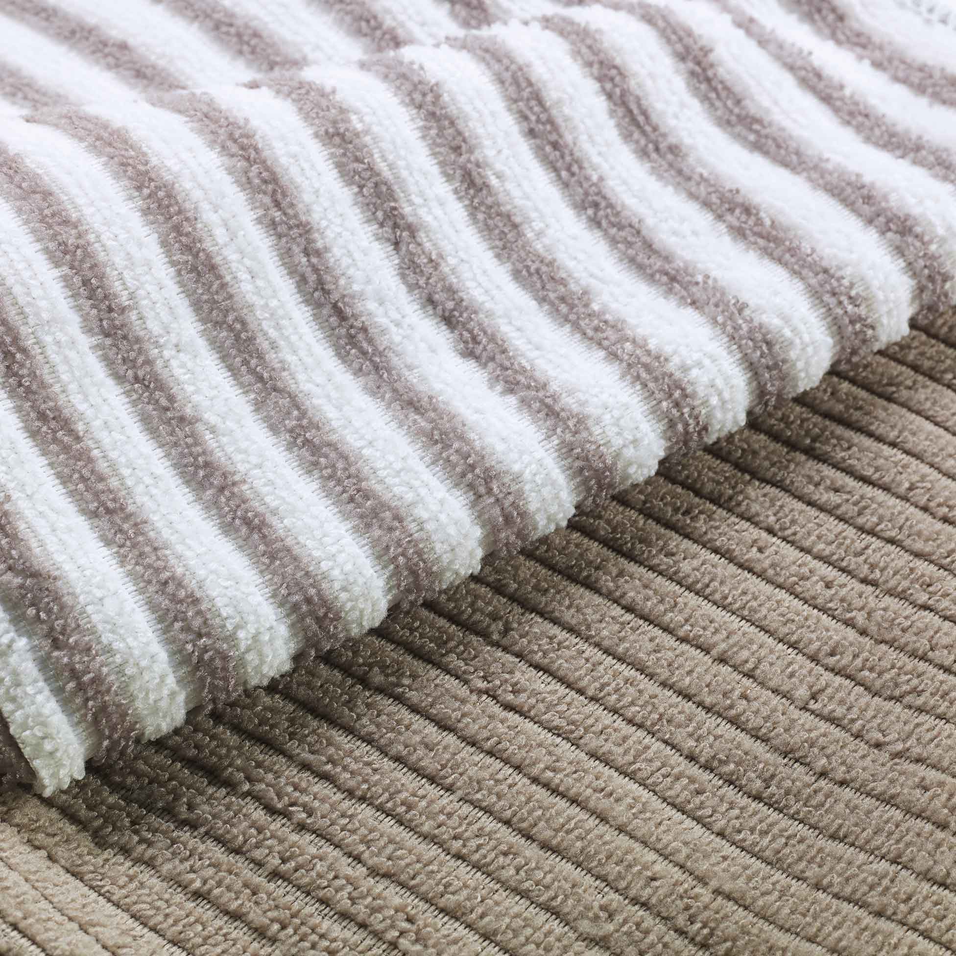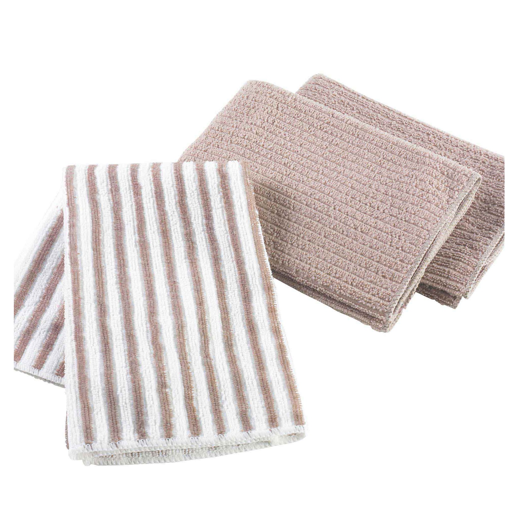 • Lot : 3 pièces (2 unis + 1 rayé) • Dimensions : 40 x 40 cm • Matière : 100% polyester microfibre (absorption rapide et séchage efficace) • Couleur : taupe, sobre et moderne