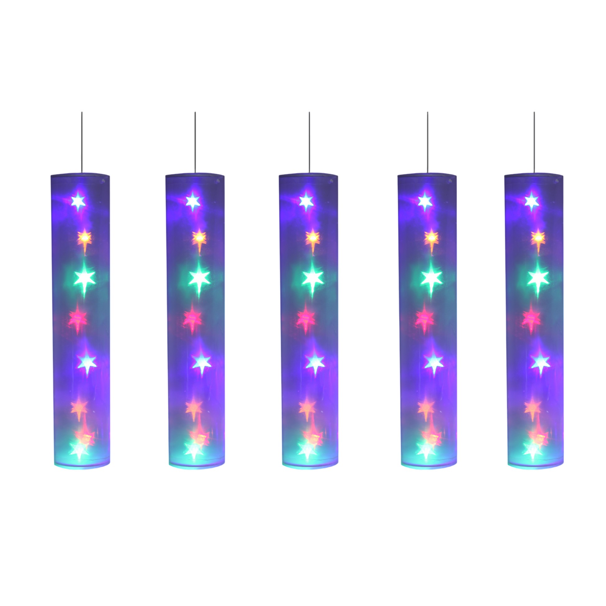 Apportez une touche festive et colorée à votre décoration intérieure avec ce lot de 5 tubes lumineux ornés de jolies étoiles LED multicolores.