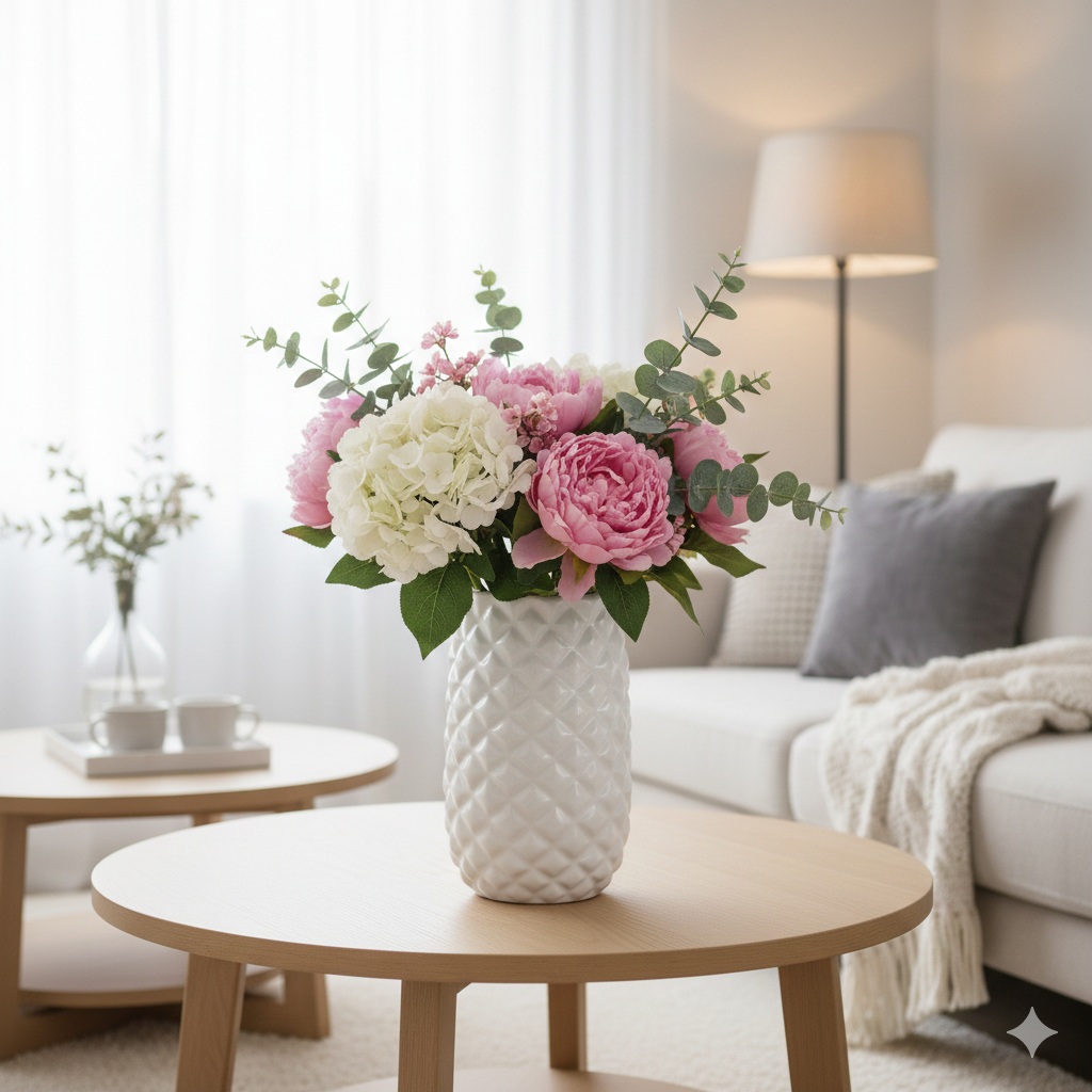 Ce vase est parfait pour créer une atmosphère douce et élégante, été comme hiver, et s’accorde harmonieusement avec des matières naturelles comme le bois, le lin ou le rotin.