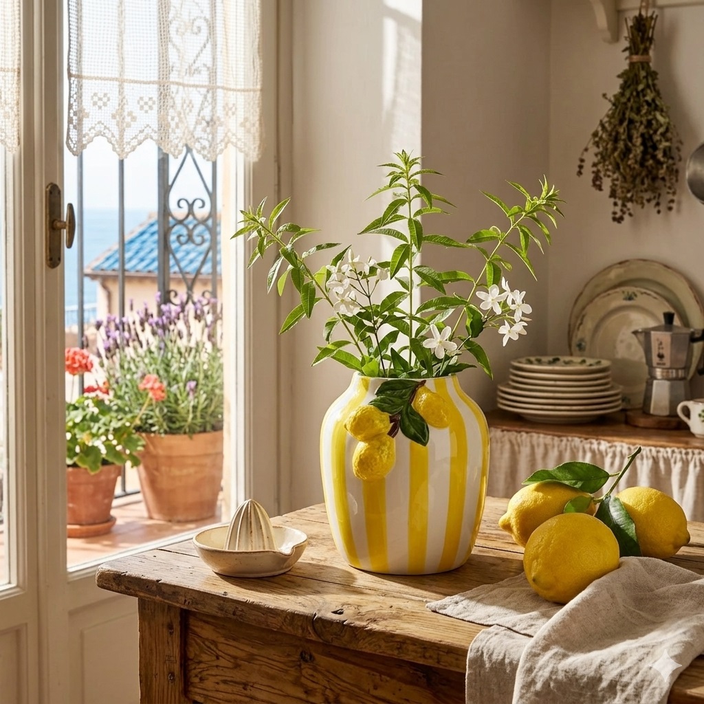 Apportez une touche ensoleillée à votre décoration avec le vase en céramique "citron".