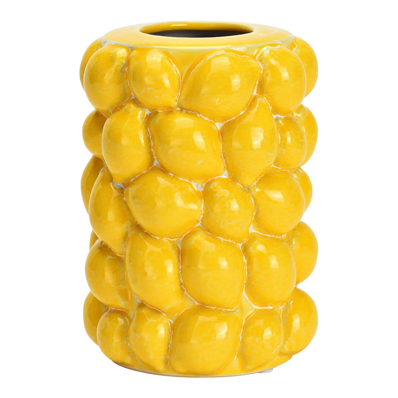 Apportez instantanément du soleil et de la bonne humeur à votre intérieur avec ce vase citron en céramique jaune au design original et gourmand. Sa forme généreuse, composée de citrons en relief empilés, en fait une véritable pièce décorative qui attire le regard et dynamise votre espace.