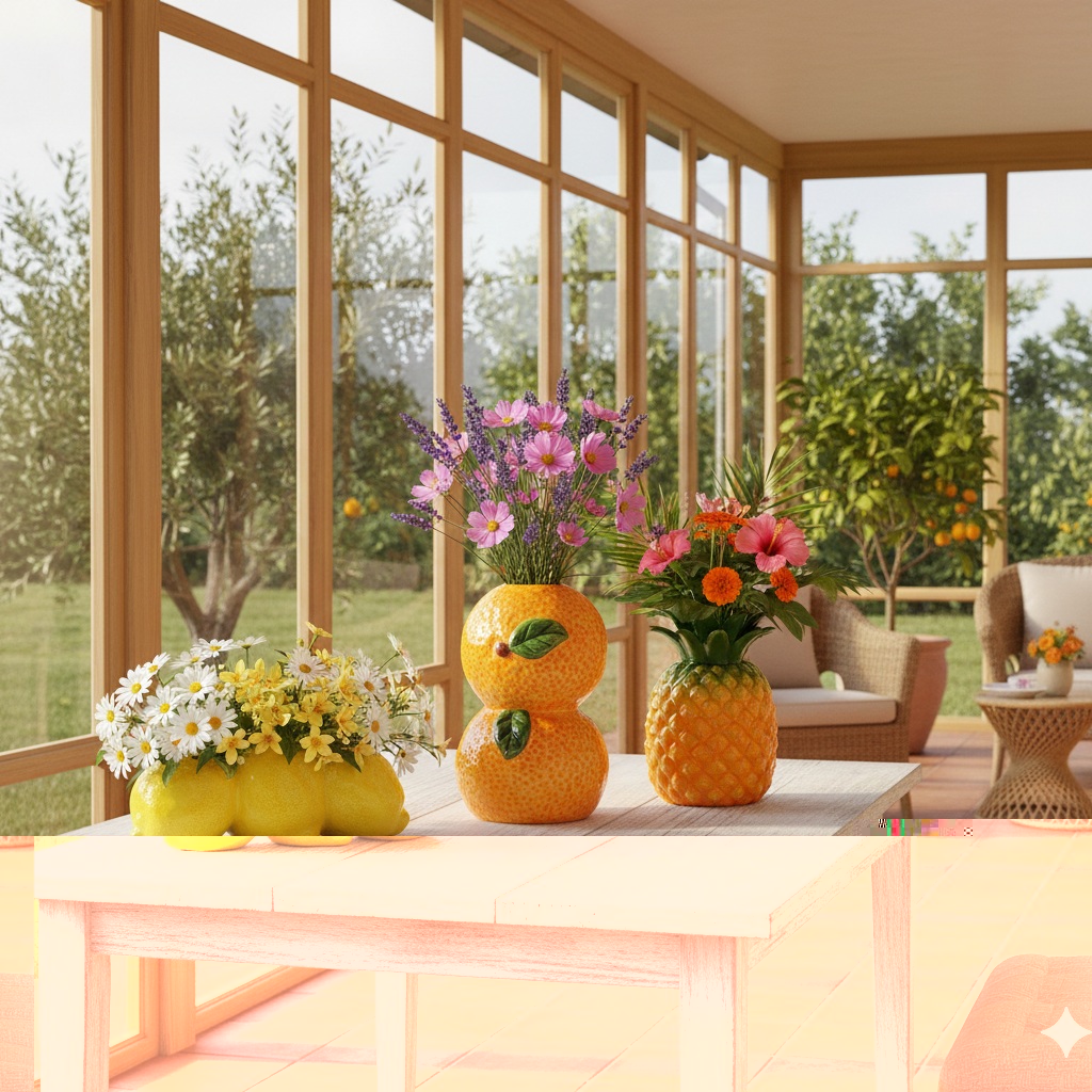 💡 Astuce déco : associez-le à des fleurs blanches ou jaunes pour renforcer son côté lumineux, ou combinez-le avec d’autres vases fruits pour une décoration pleine de pep’s.
