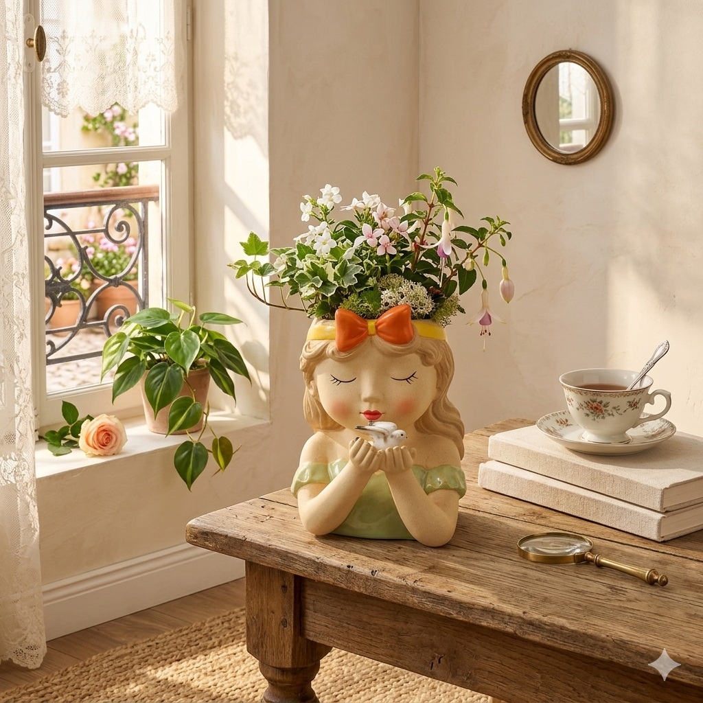 Apportez une touche poétique et élégante à votre intérieur avec le vase "Jeune fille à la colombe de la paix".