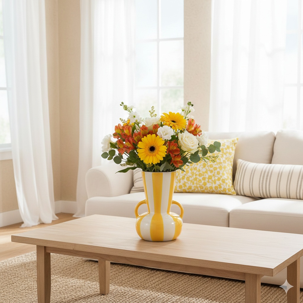 Ce vase rayé est parfait pour créer une ambiance estivale, méditerranéenne ou contemporaine. Il se décline également en jaune et en orange, pour une décoration encore plus solaire et vitaminée, à mixer ou à assortir selon vos envies.