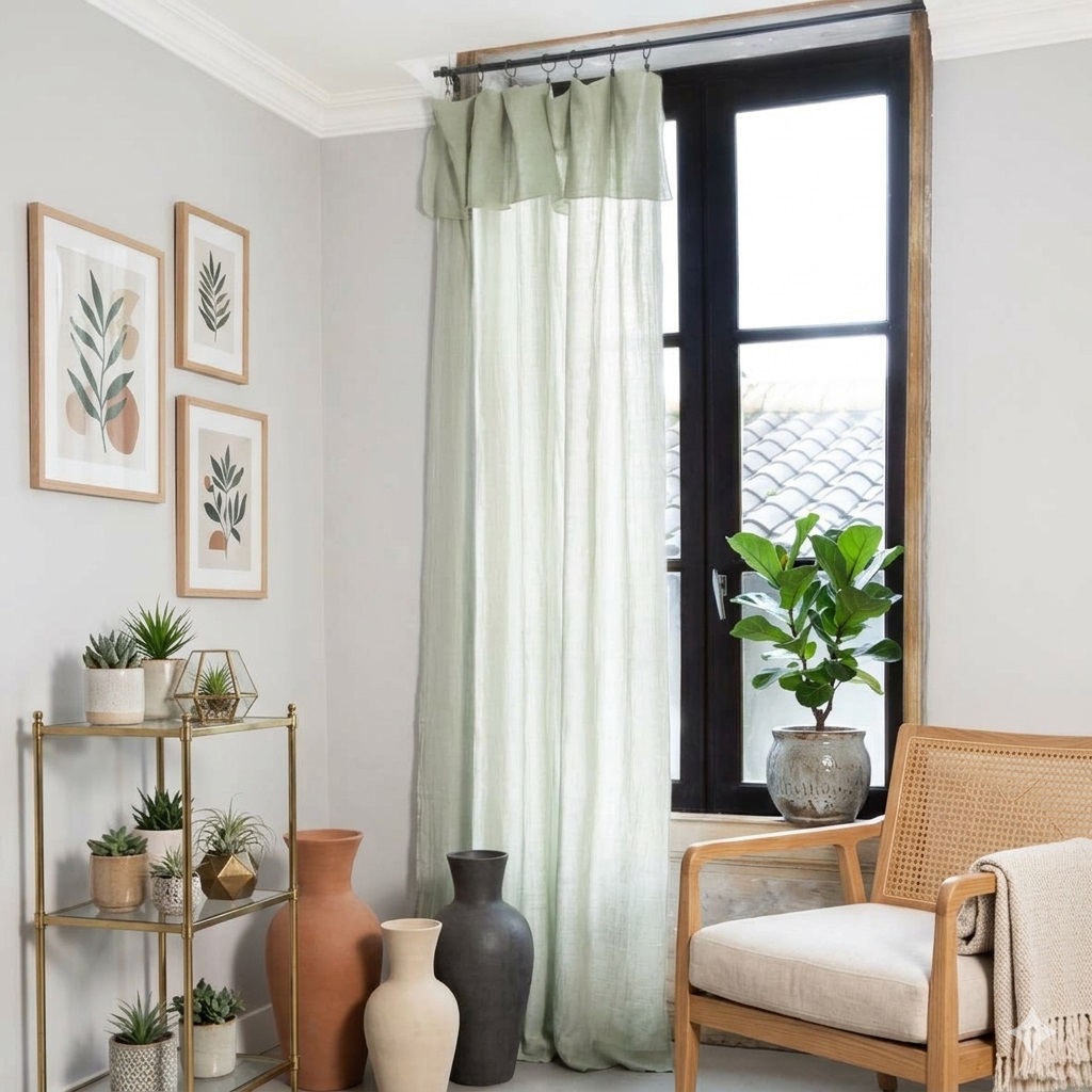 Voilage ajustable en gaze de coton, idéal pour apporter une touche naturelle et légère à votre intérieur.