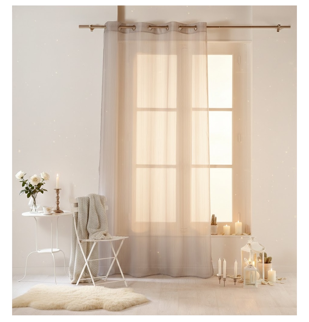 Apportez luminosité et légèreté à votre intérieur avec le voilage à œillets rayé Collection Horizon. Son tissu voile laisse passer la lumière tout en décorant vos fenêtres avec un style moderne et élégant. Idéal pour salon, chambre ou bureau.