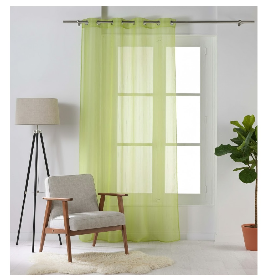 Il est équipé de 8 œillets ronds en métal coloris argent avec un diamètre intérieur de 4 cm, assurant une belle retombée et un passage facile sur la tringle. Prêt à poser, il s’installe rapidement sans accessoires supplémentaires.