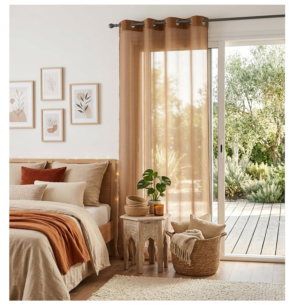 Voilage sable côtelé, idéal pour apporter une touche chaleureuse et élégante à votre intérieur.